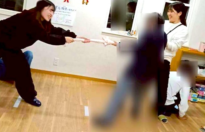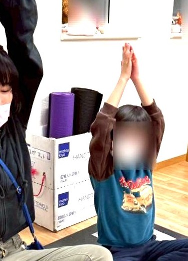 プログラムが終了した後も、ヨガポーズカードを持ち、「〇〇してください!」とヨガ教室ごっこが繰り広げられたり、ヨガマットにくるまり、来る節分の恵方巻になってみたり👹