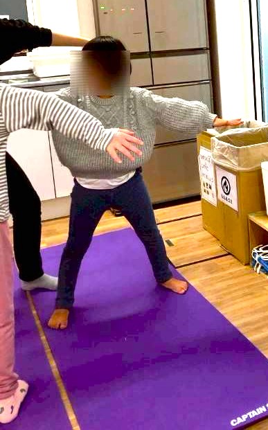 ちょっぴり難易度をあげた「目を閉じる」「片足立ちで」というルールにもトライ!