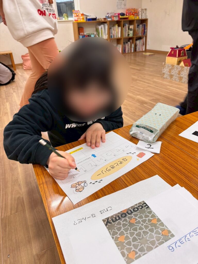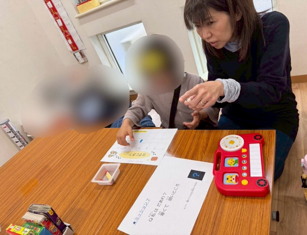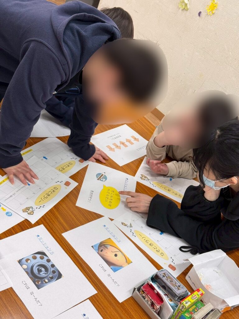 問題を解きながら、「多分答えは~せんせいかな?」と2問ほどしか解いていないのに、お宝の答えを鋭い洞察力で考えるお友だち。高校生のお姉さんは自分が解き終えても皆が解き終えるのを見届け、時には優しくヒントをくれる姿がありました😊