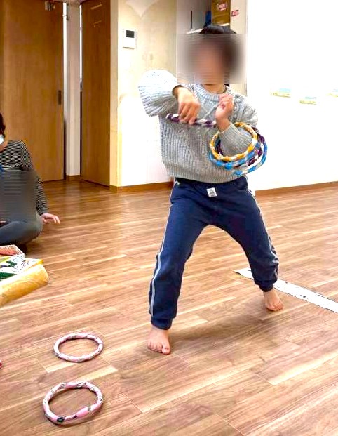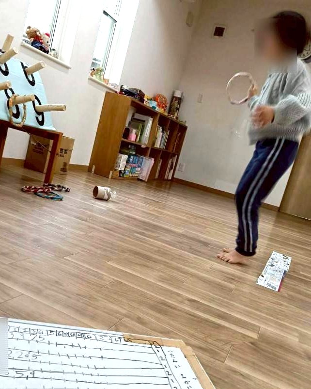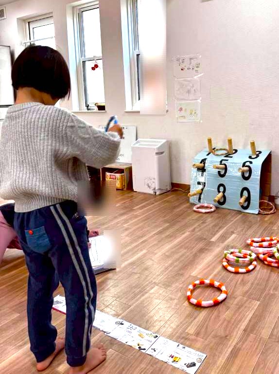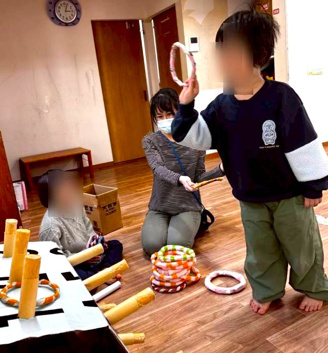 手作り輪投げセットを一生懸命に組み立ててくれるお友だちもいました🎶