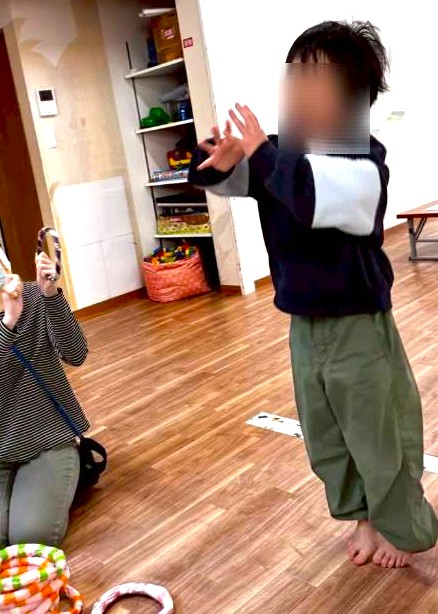 一度投げてみて目で見たもので手指の運動をどう調整していくか…協応動作も育まれていきます✨