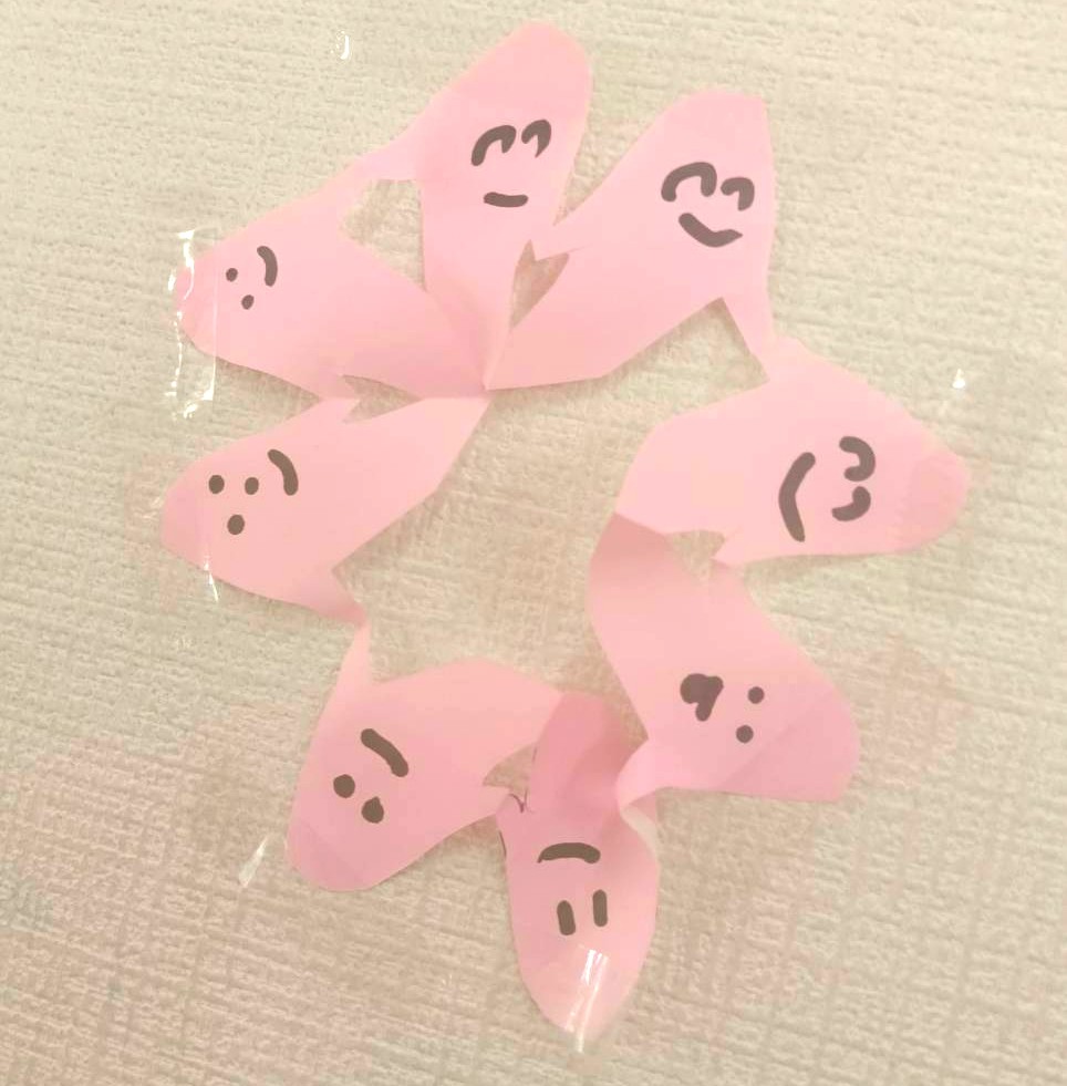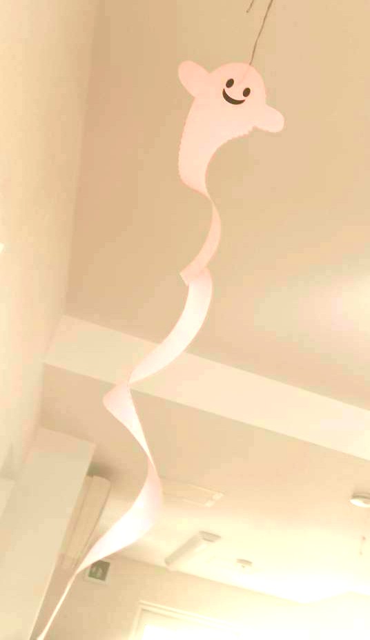 紙を切り抜いてつくるくるくるオバケは、こ~んなにしっぽがながくなりました!