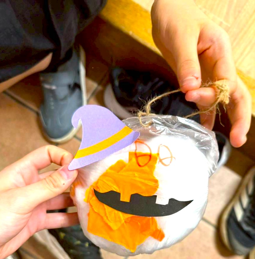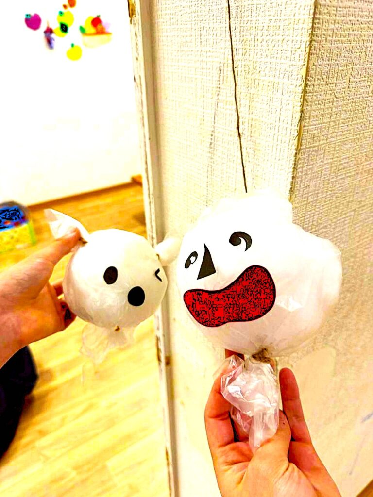 透明な袋に綿を詰めて作るふわふわのジャック・オー・ランタンやオバケ👻