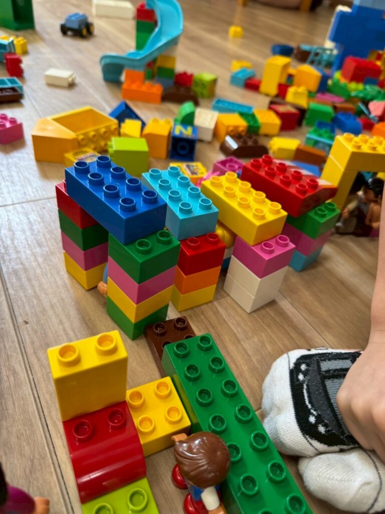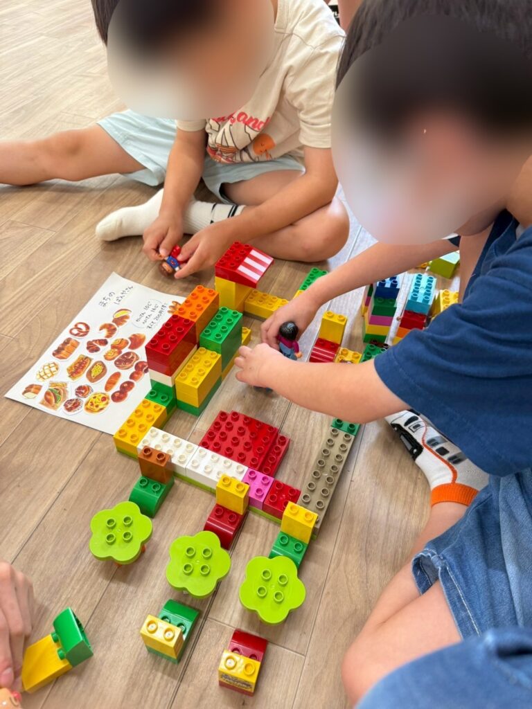 ブロック遊びが好きなお友だち。来所すると、大好きなパン屋さんを作り始めるのですが、途中からお友だちが「入れて~」と遊びに加わります。