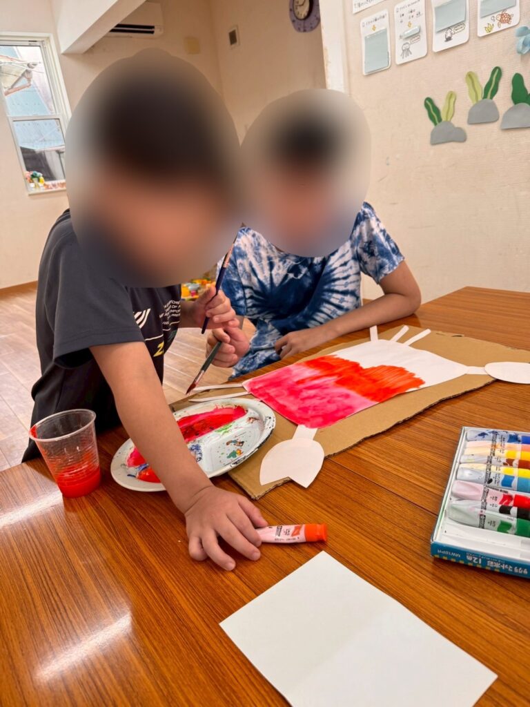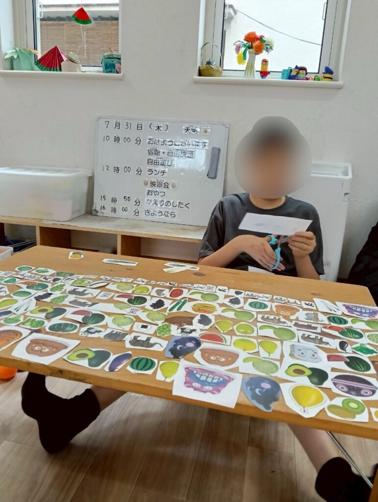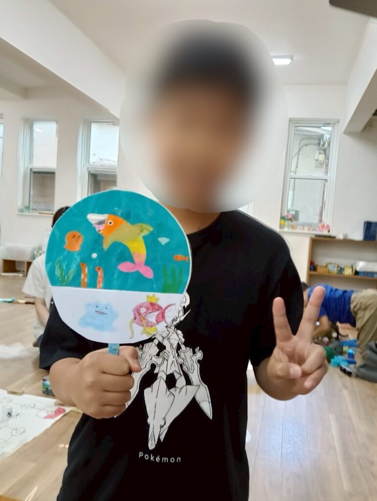 その他にも、夏らしい作品を作ったり、「こういうのが作りたいから、この材料ください」とスタッフにプレゼンテーションしたり。自分でやりたいことを見つけ、考える姿、素敵だなと感心です😊