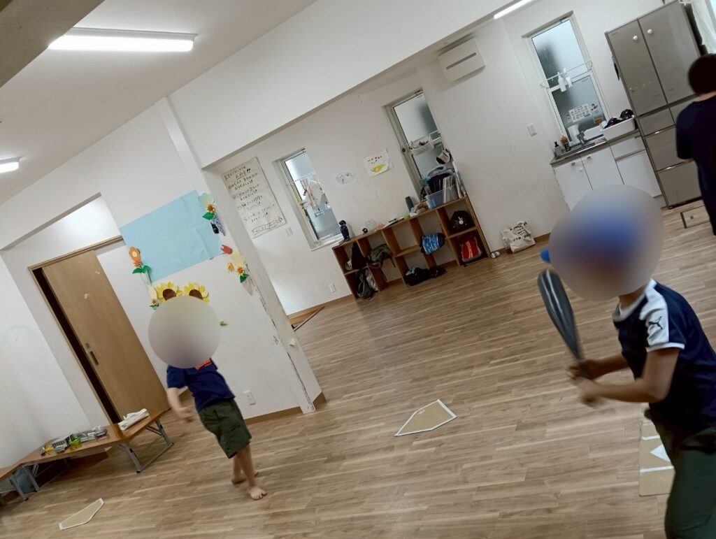 長い夏休み。程よい運動も大事ですね🙂↕️野球が好きなお友だち。始めはスタッフとの対戦を楽しんでいましたが、少しずつお友だちと遊ぶ楽しさが分かってきているようで、スタッフが参加しなくてもお友だちと楽しむ姿がありました⚾