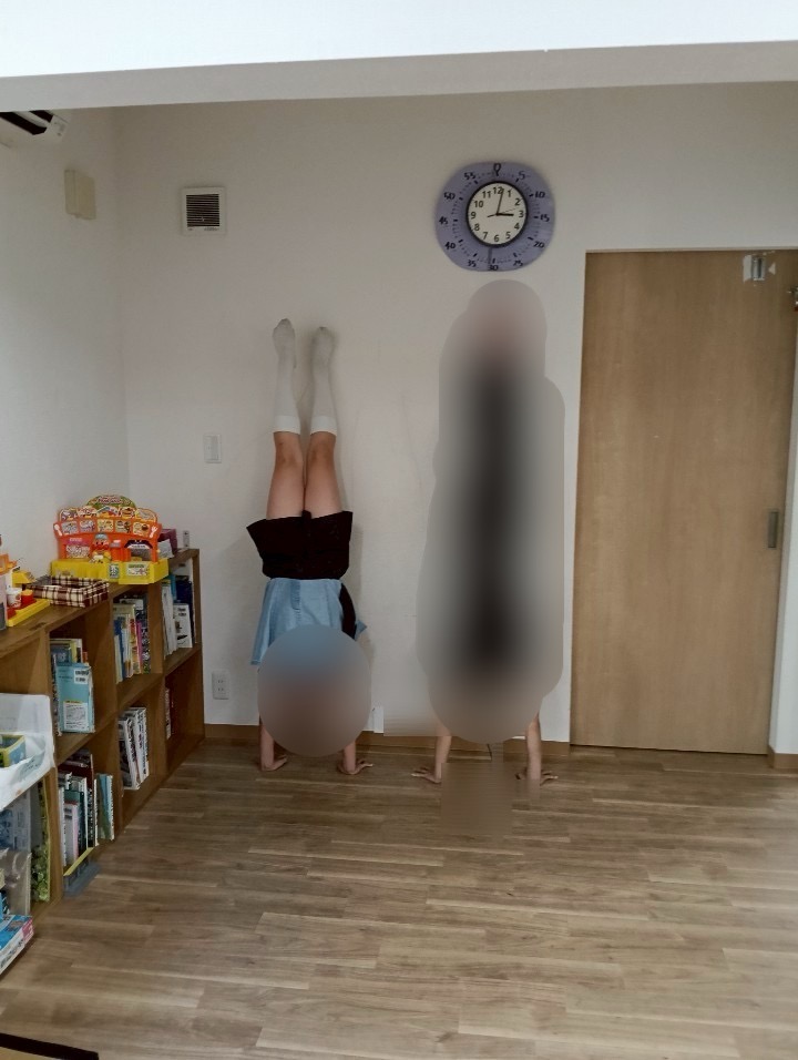 また、ダンスを習っているお友だち。「なんか身体動かしたくなってきた~」と倒立や側転を披露してくれたり、こども主催のストレッチ講座を開催してくれたり…
