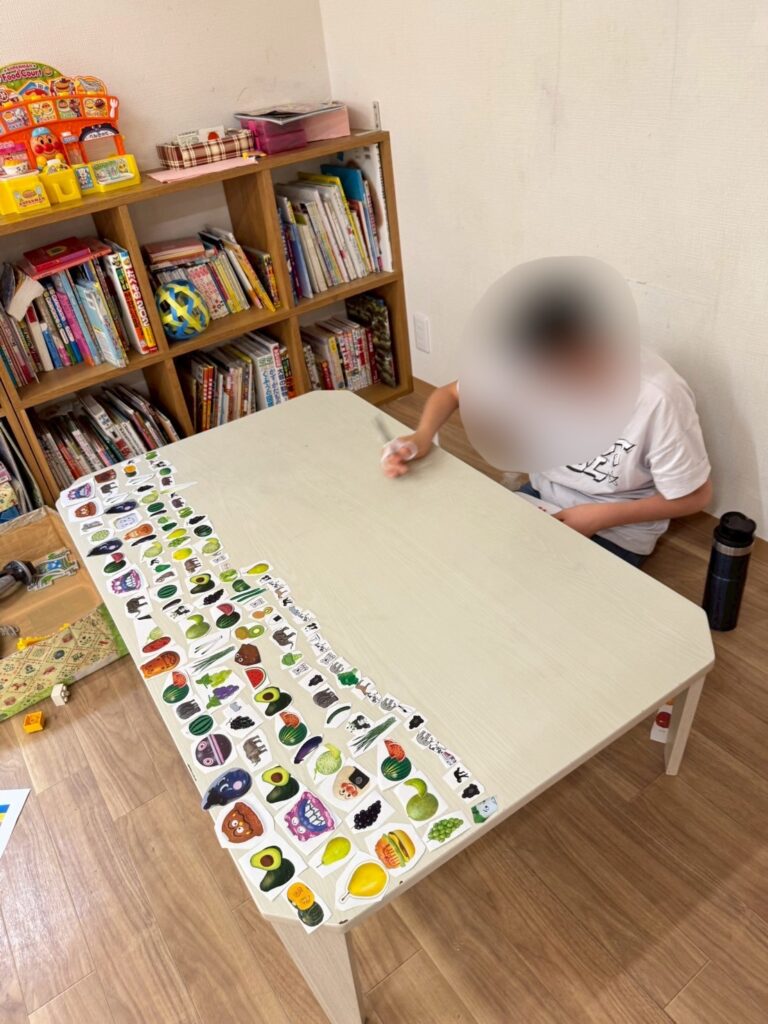 夏休み、時間があるので今まで使わなかった玩具も駆使して、並べることを楽しんだり、机一杯に切ったものを並べたりしました👏興味の幅が少しでも広がればいいなと、こどもの好みに合うようなイラストを印刷するのですが、落選…💦