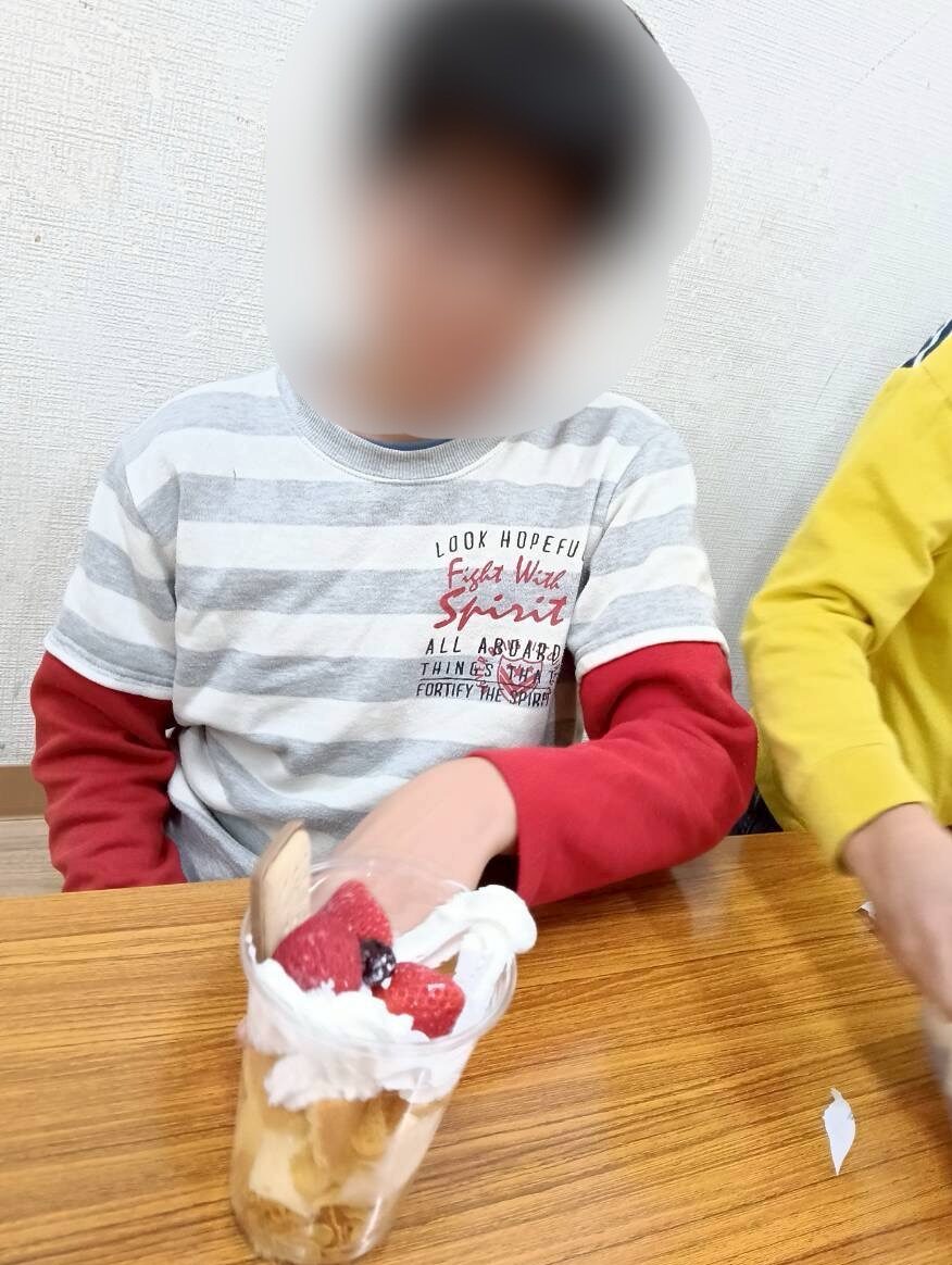 さっそく誕生月のお友だちが来所すると、どんなメニューなのか楽しみにしている様子が…「みんなの好きなものを組み合わせるんだよね?」「分かった!パフェかな~」と想像して待ってくれました!