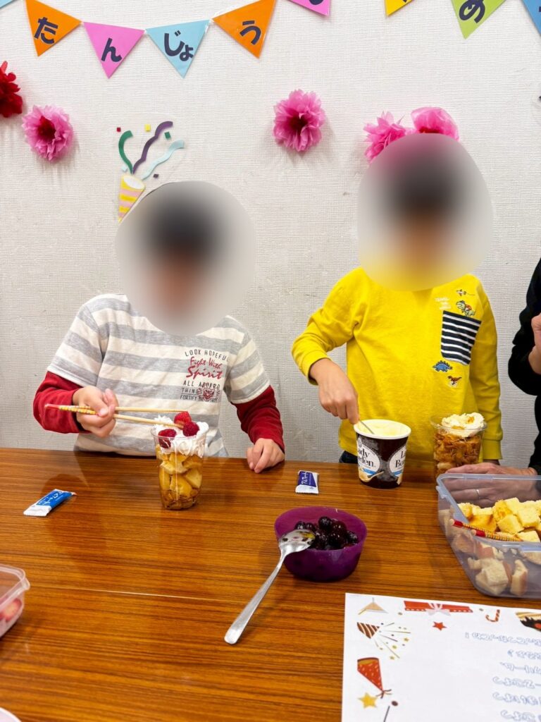 トッピングの具材もみんなで分け合い、誕生児のお友だちも2回戦目のパフェを堪能していました😋